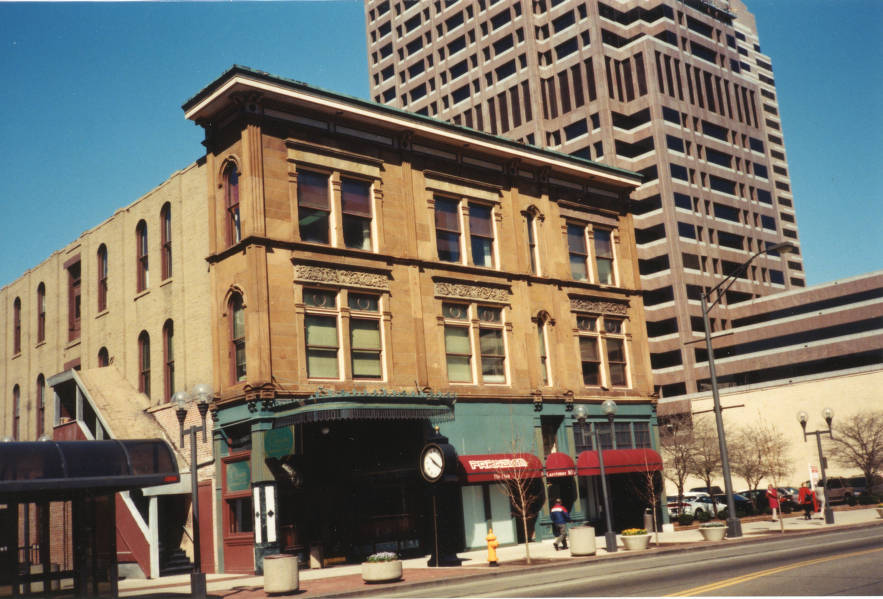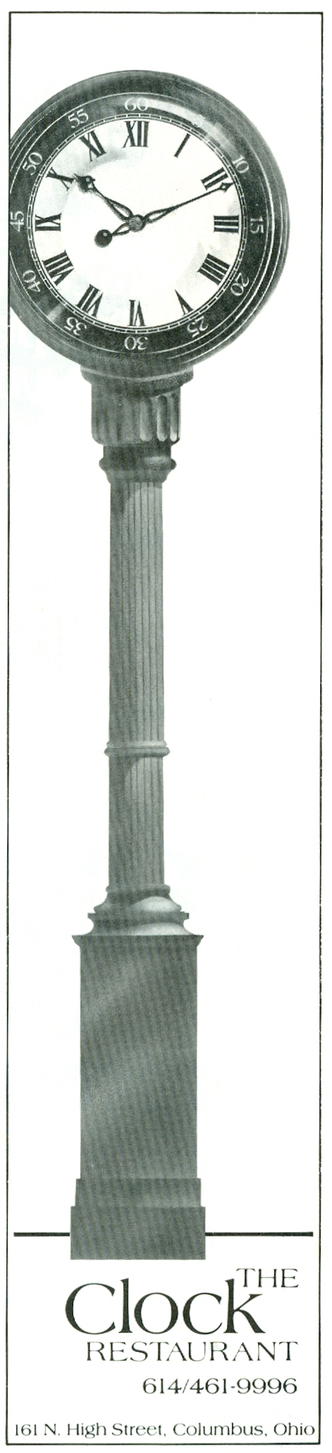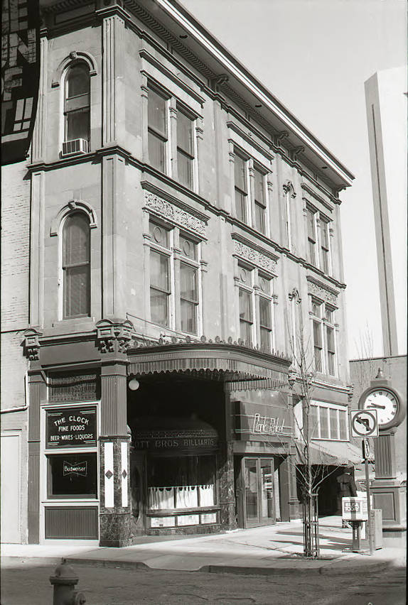 The Clock Tavern, a restaurant on North High Street, located inside the Larrimer Building, This location was originally the Bott Brothers Billiard Parlor & Saloon. Joseph F. Bott, and his brother William Bott, came to Columbus in 1876 and co-founded Bott Brothers Billiard Parlor & Saloon in 1883. The establishment was previously located in the Brunson Building at 145 North High Street, but after a 1903 fire the Botts relocated to this location at 161 North High Street in 1905. They remained in operation until 1923.